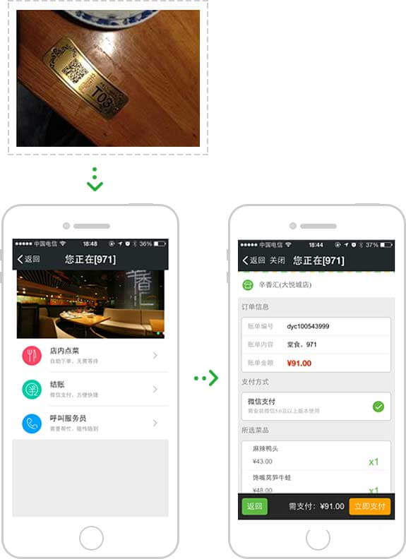 顾客手机和服務(wù)员收银终端收到支付成功反馈