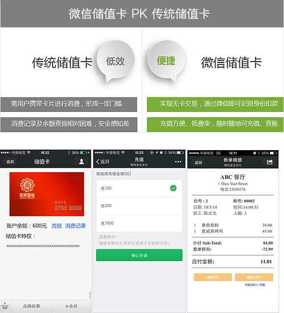 储值卡储值:通过微信,完成储值卡身份绑定,并可(kě)用(yòng)微信支付自主充值