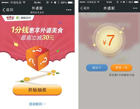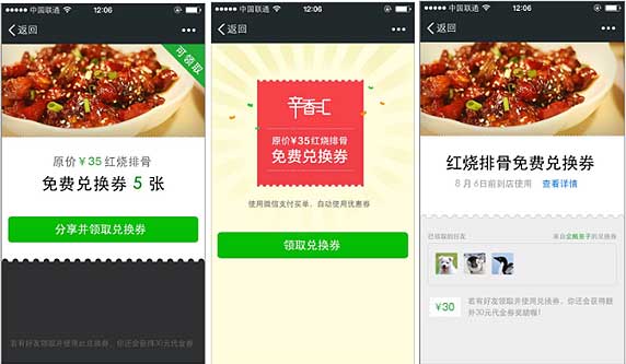 支付完成后获取到有(yǒu)限的优惠券,顾客可(kě)分(fēn)享到朋友圈或微信群给好友抢
